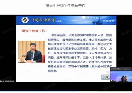 培训依托学堂在线“雨课堂”平台组织实施,内容涵盖立德树人、导师职责、指导方法、心理学知识、廉政教育等五个方面,为导师提供师德师风、导师能力提升的高品质学习资源,旨在规范师德师风,提升业务素质,提高育人能力,确保政策、制度和措施在指导环节落地见效,让导师真正成为研究生成长成才的指导者和引路人。参加培训的导师们,沉浸式倾听,互动式交流,学习氛围良好。